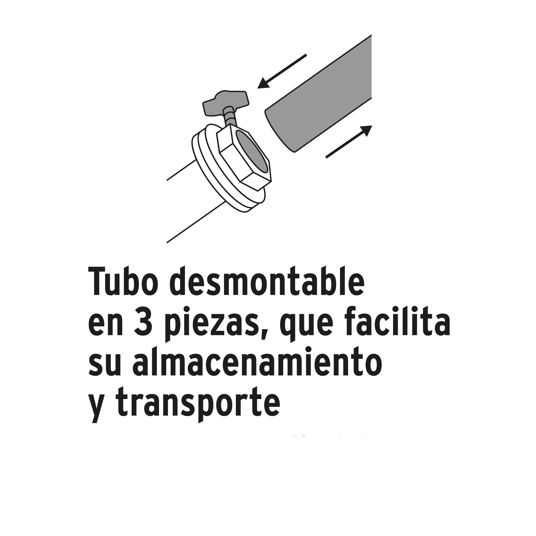 Tubo desmontable en 3 piezas, que facilita su almacenamiento y transporte. El tubo y la bomba vienen integrados en el mismo empaque.