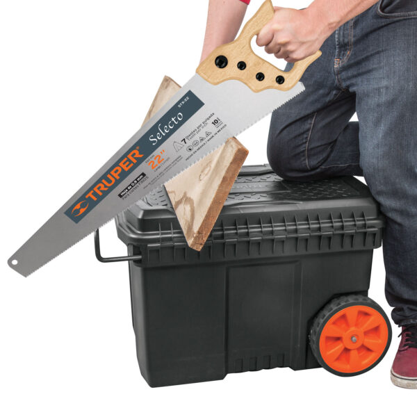 - Ruedas grandes de uso rudo de 7 1/2″ (22 cm) para facilitar la transportación