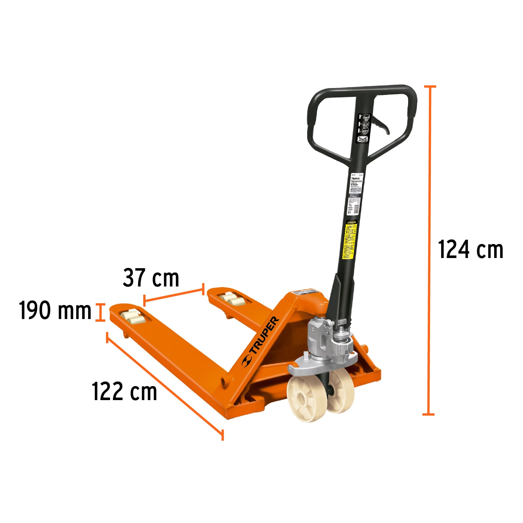 Estibadora manual de 3 toneladas para el acomodamiento de carga.