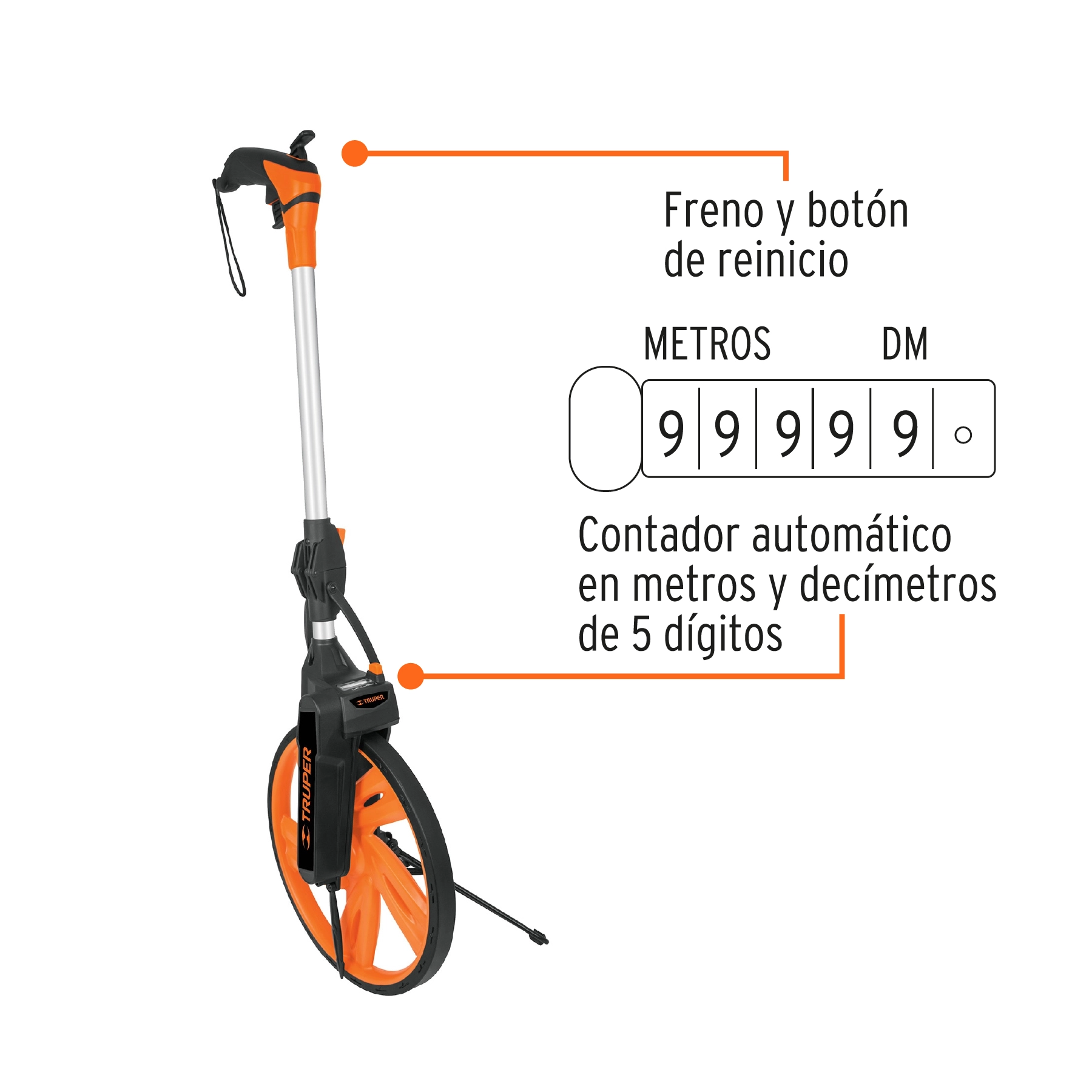 Odómetro con rueda y contador automático, ideal para terrenos de superficie irregular como obra, campos, cultivos, bosques, etc.