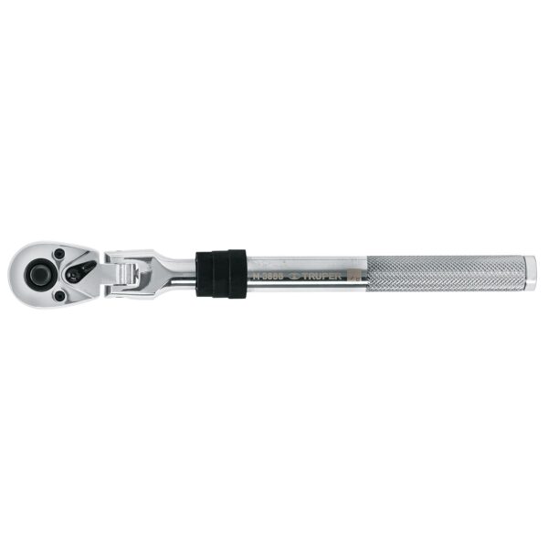 Ratchet con engrane de acero al cromo molibdeno de 90 dientes y cabeza articulada de 180° para 8 posiciones.